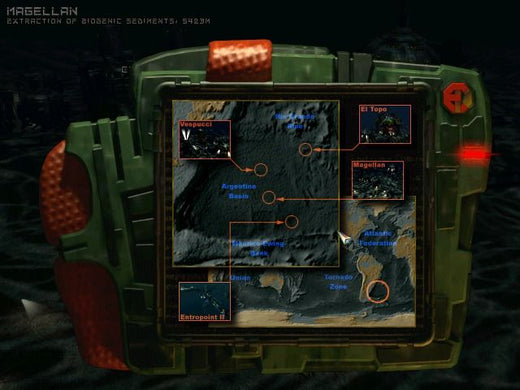 Archimedean Dynasty is a submarine simulation with action elements, and a prequel to the Aquanox series. Controlling Flint, the player completes primary and secondary missions to advance the story and earn money, which can be used to upgrade Flint's vessels. Primary weapons, torpedoes, turret command software, generators, hull plating, noise reduction technology, and other devices can be purchased and installed on the boat. The player then begins a journey in the submarine, viewing the 3D environments from a first-person perspective. Deep sea currents and particularities of the terrain must be observed, and enemies dealt with by using the available weapons on board.