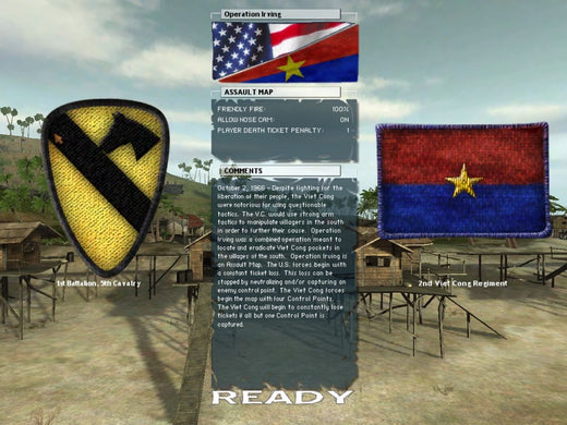 Single player and multiplayer gameplay are basically the same. In both, the player has to capture outposts, and when enough have been captured, the other team's tickets, which are essentially lives, start to fall down slowly. The more people of a team are taking an outpost at the same time, the more quickly this team will capture the outpost. There is no plot at all except that the player is a United States or Vietcong soldier in the Vietnam war.