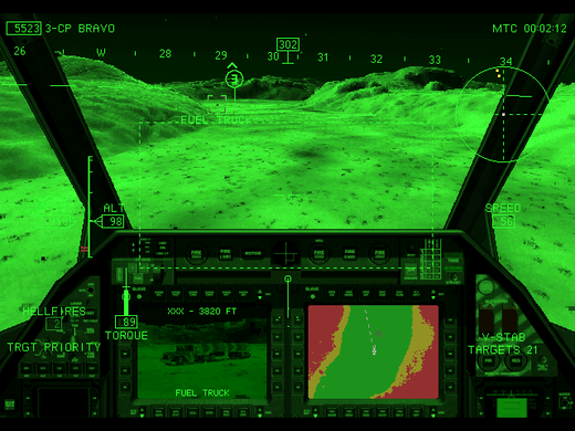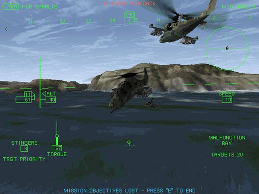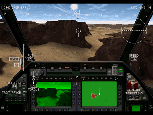 Novalogic's VoxelSpace2 provides landscapes such as jungles, mountainous ranges and sand dunes. A playback mode is also included, allowing you to jump back into a mission and re-do it more successfully.
