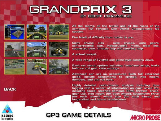 Featuring stunning graphics and realistic gameplay, Grand Prix 3 2000 allows you to: