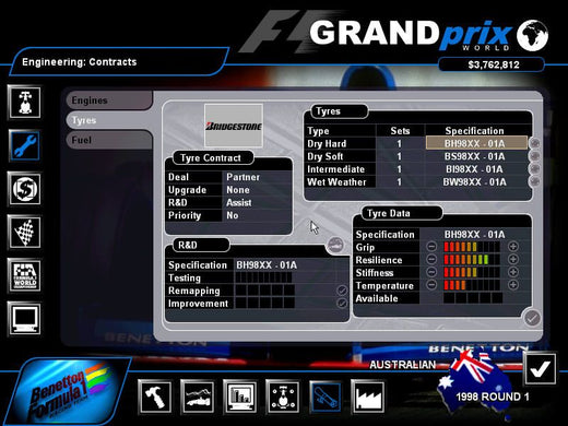 Step into the fast-paced world of motorsport with the Grand Prix World Microsoft Windows PC CD. This game provides an unparalleled racing experience that will keep you on the edge of your seat, whether you're a casual gamer or a dedicated F1 fan. Feel the adrenaline rush as you manage your own Formula 1 team, from car development to race day strategies.